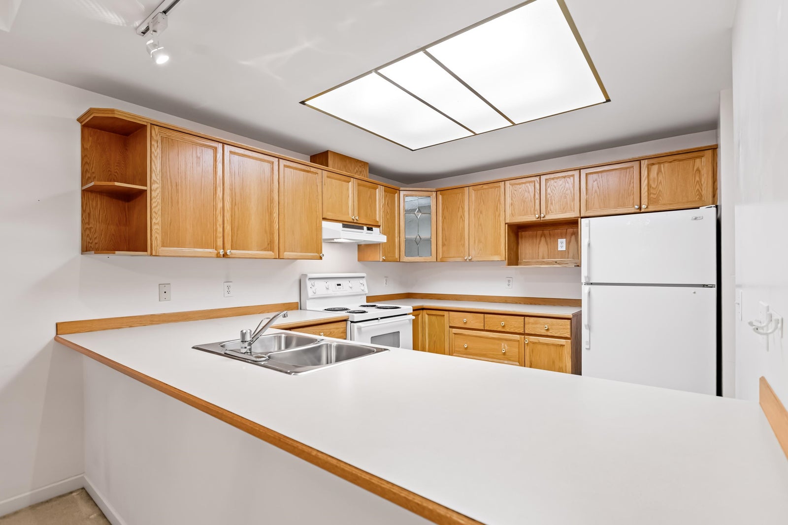 Welcome to Emerald Manor, a sought after 55+ community offering the perfect balance of comfort, convenience, and lifestyle. Ideally located near downtown, shopping, banks, and transit, everything you need is just minutes away. This spacious nearly 1,100 sq. ft. 2 bedroom, 2 bathroom home features bright, generously sized rooms, ample storage, and a large sunny patio with access from both the living room and primary bedroom. The building is pet friendly (2 pets allowed with restrictions) and includes a guest suite for visiting family or friends. Whether you are looking for a long term home or a solid investment, Emerald Manor is an excellent choice. Homes here are always in demand, so act quickly to book your viewing (some images have been digitally staged)!